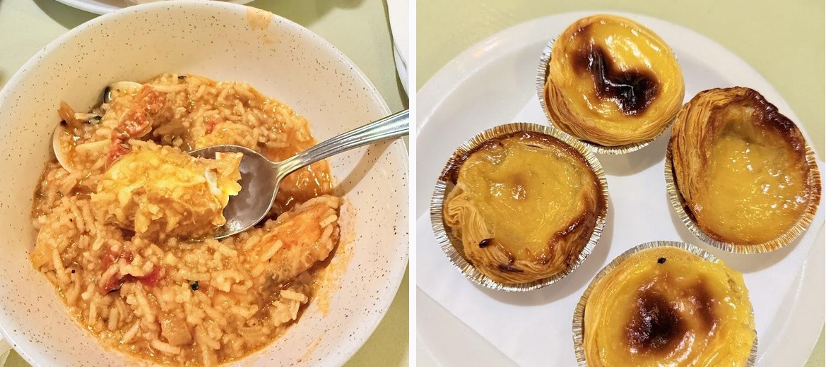 Nice boss great seafood rice Portuguese natas